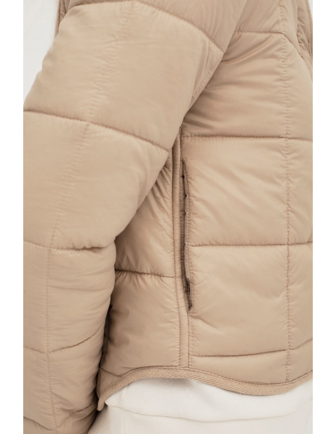 Chaqueta acolchada con diseño a cuadros, bolsillos discretos en los laterales y cierre a presión con botones. Moderna y funcional, perfecta para abrigarte en cualquier ocasión. Combina con el bolso Corts.
