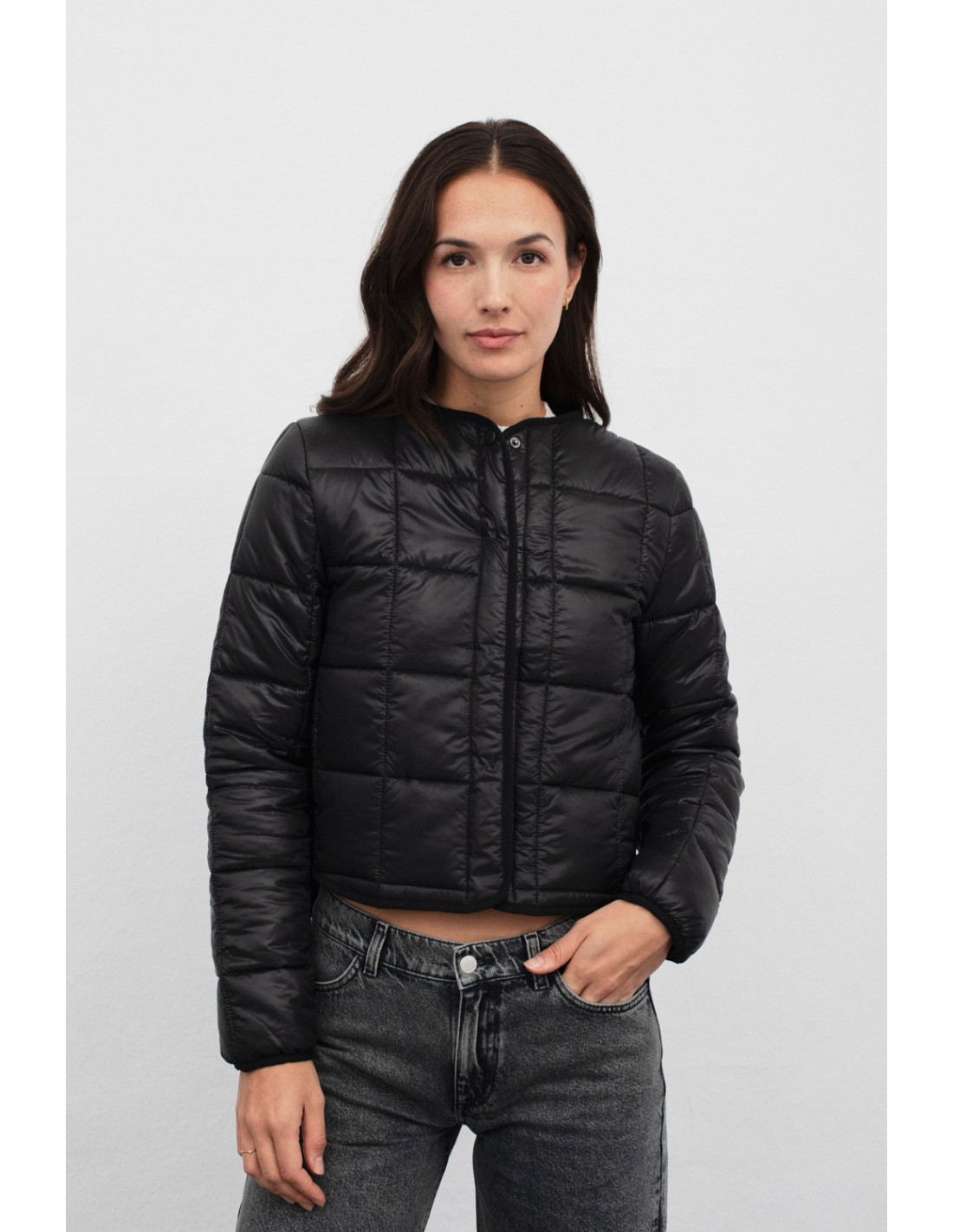Chaqueta acolchada con diseño a cuadros, bolsillos discretos en los laterales y cierre a presión con botones. Moderna y funcional, perfecta para abrigarte en cualquier ocasión. Combina con el bolso Corts.
