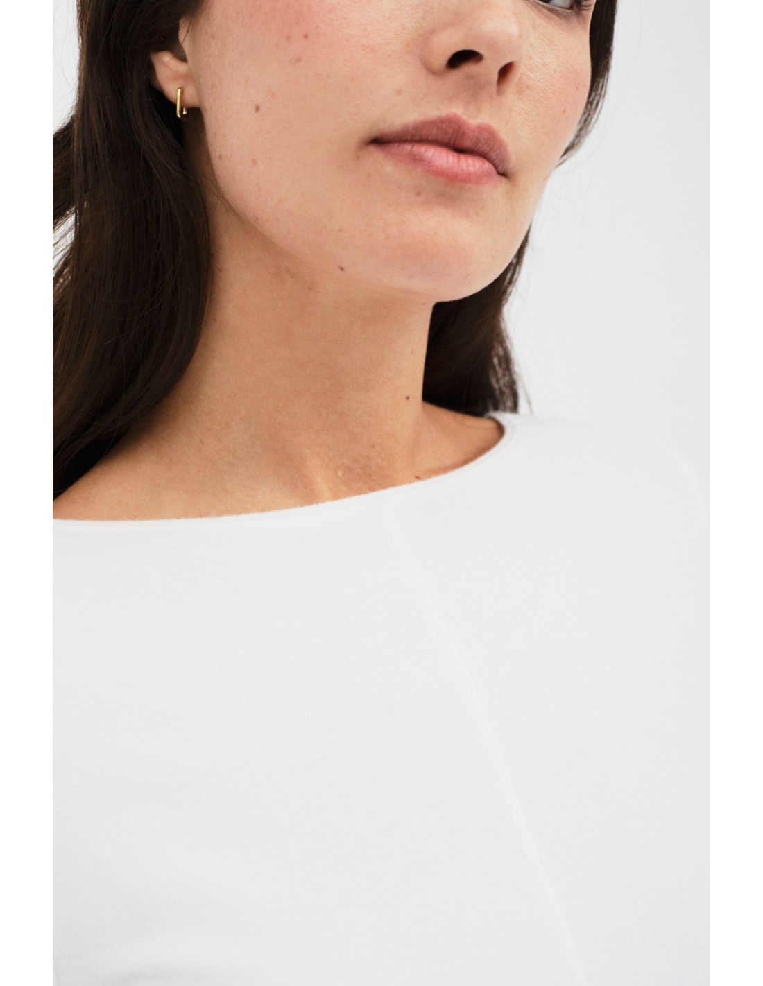 Leith es una camiseta de manga larga con cuello barco y un detalle de nervio central. Con un diseño sencillo y elegante, es perfecta para cualquier ocasión. Su tacto te encantará.