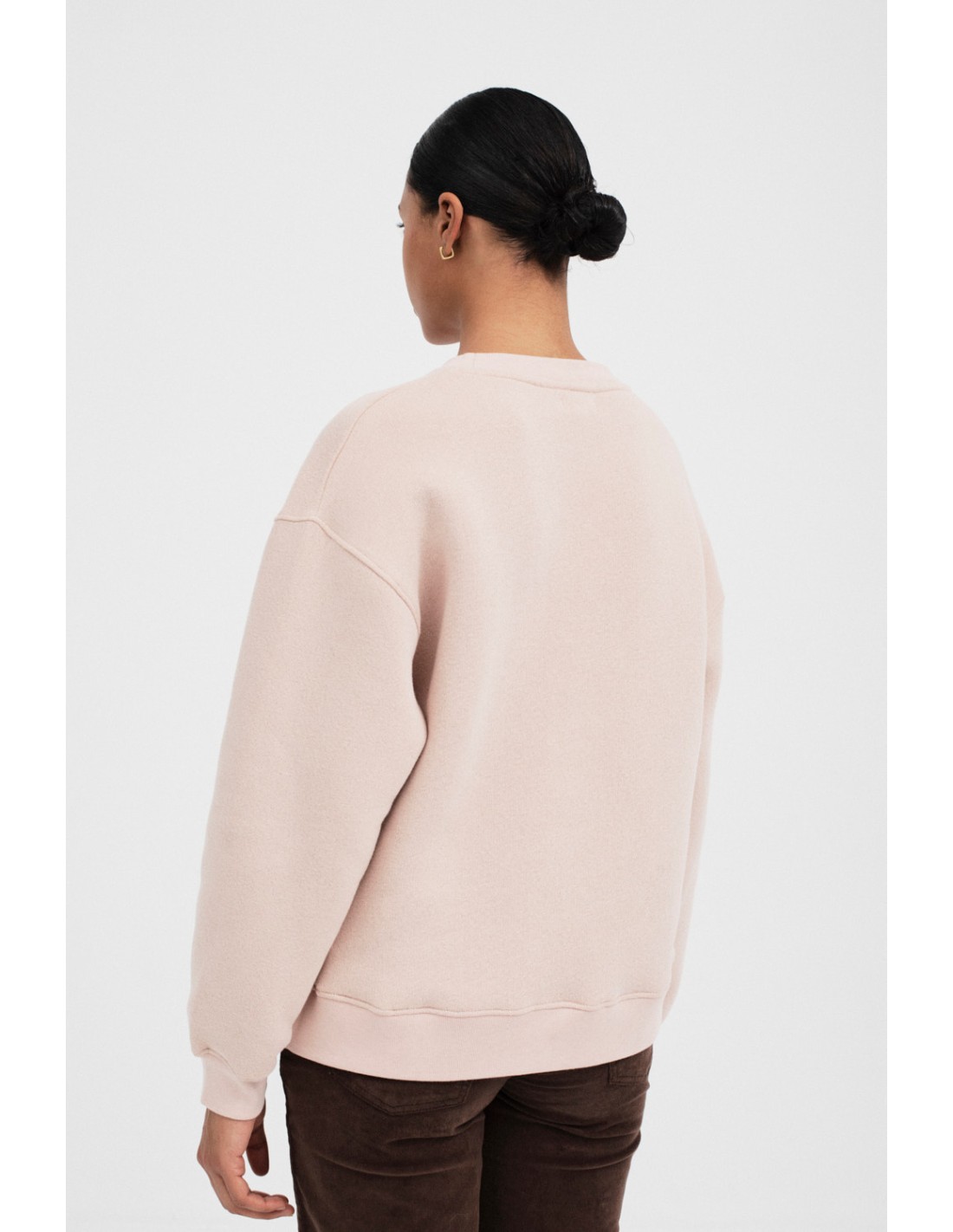 Enmore es una sudadera de corte oversize con mangas anchas y puños de canalé. El cuello y los bajos también son de canalé, con un sutil bordado del logo de Mus&Bombon a tono.