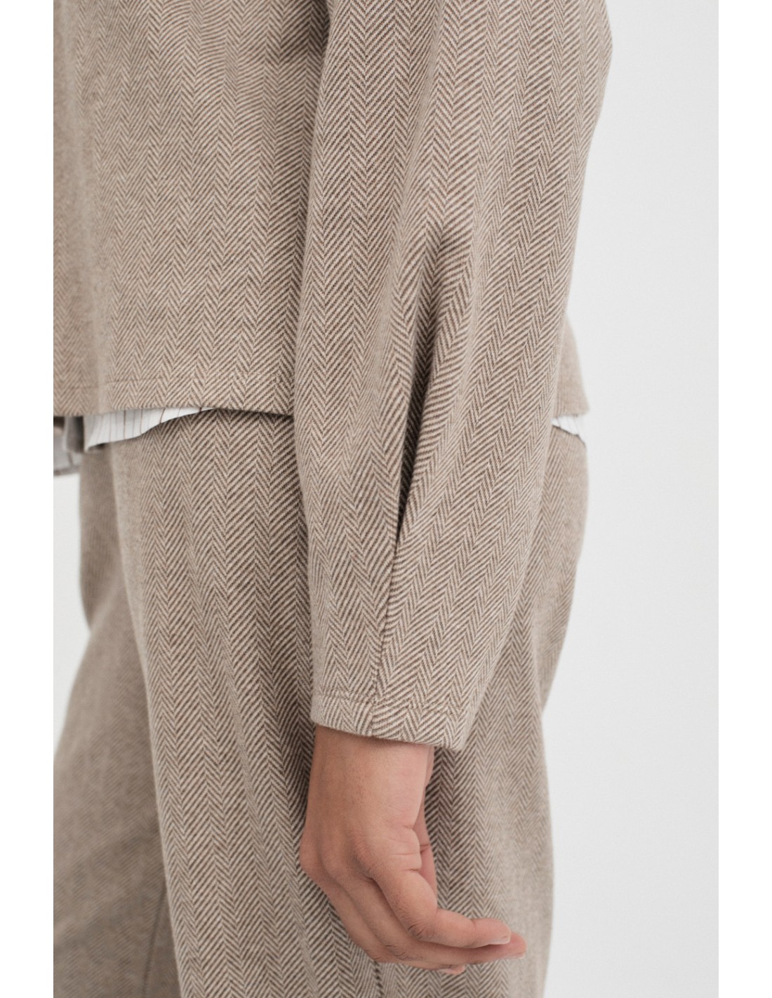 La sudadera Katong con jacquard de espiga, cuenta con un diseño moderno con cuello caja, mangas abullonadas y pliegues delicados. Combínala con los pantalones Koreg.