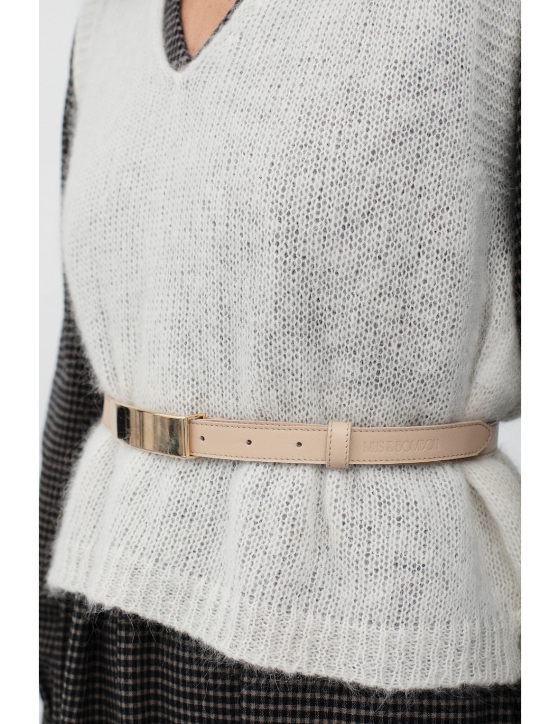 Chaleco de punto liso con cuello pico. Es una prenda de tricot integral, versátil y elegante para completar cualquier look.