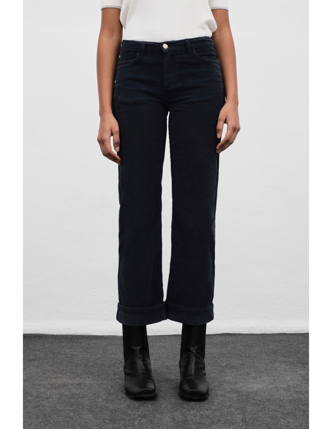 Pantalón de pana con dobladillo en el bajo, tiro medio y corte recto. Perfecto para combinar con diferentes estilos y ocasiones.
