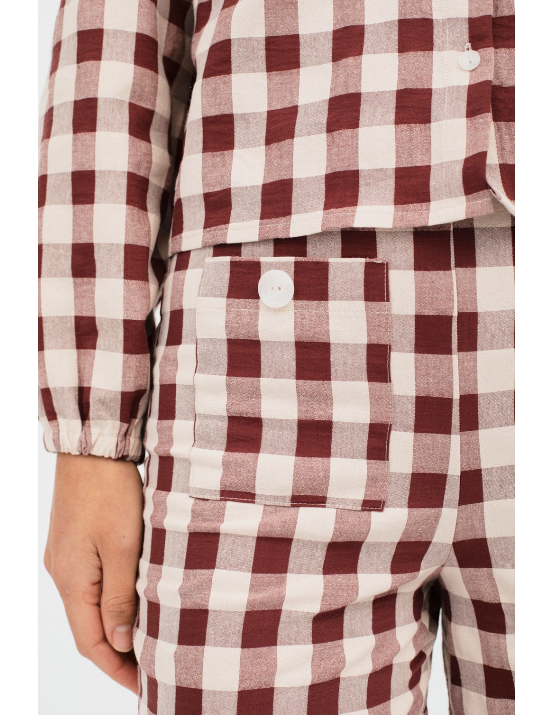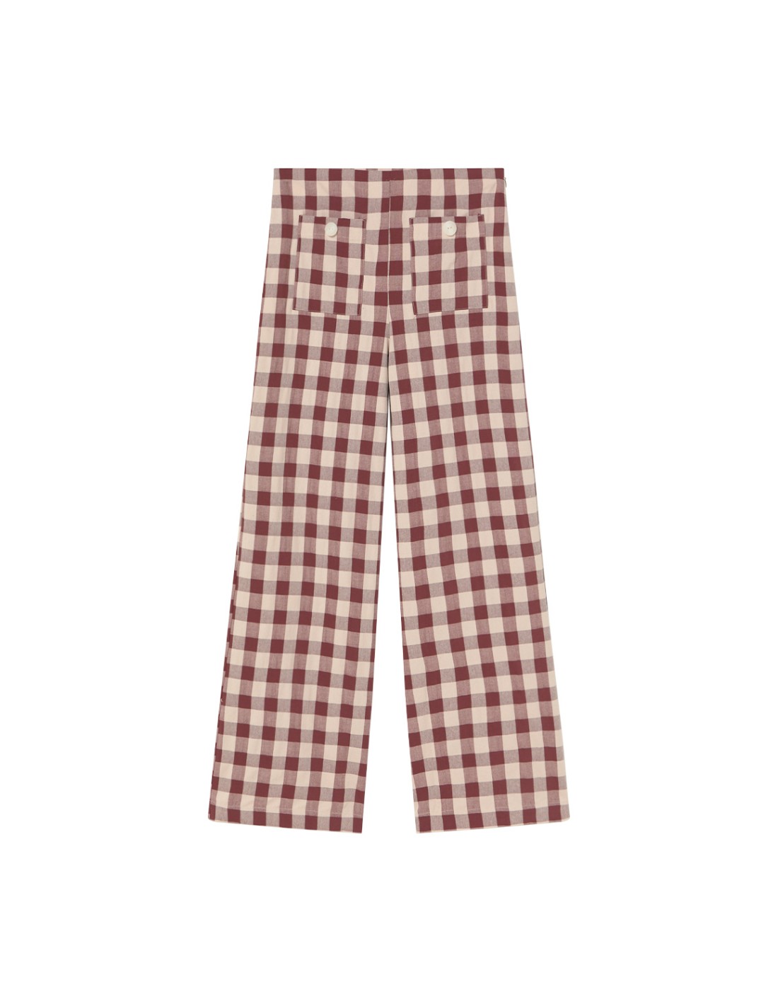 Pantalón culotte de vichy con goma plana en la espalda, cremallera invisible en el lateral y bolsillos frontales con botón. Combina con la blusa Marlene y el bolso Whitehall.