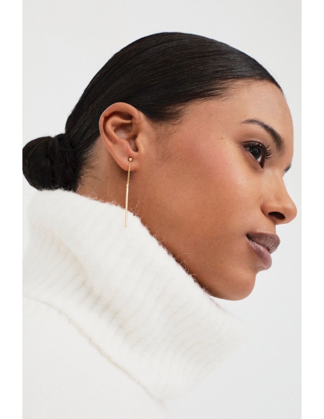 Jersey de manga larga con complemento de cuello alto añadido. Tiene un detalle de costuras exteriores y acabados en canalé, que le aportan un estilo moderno y elegante.