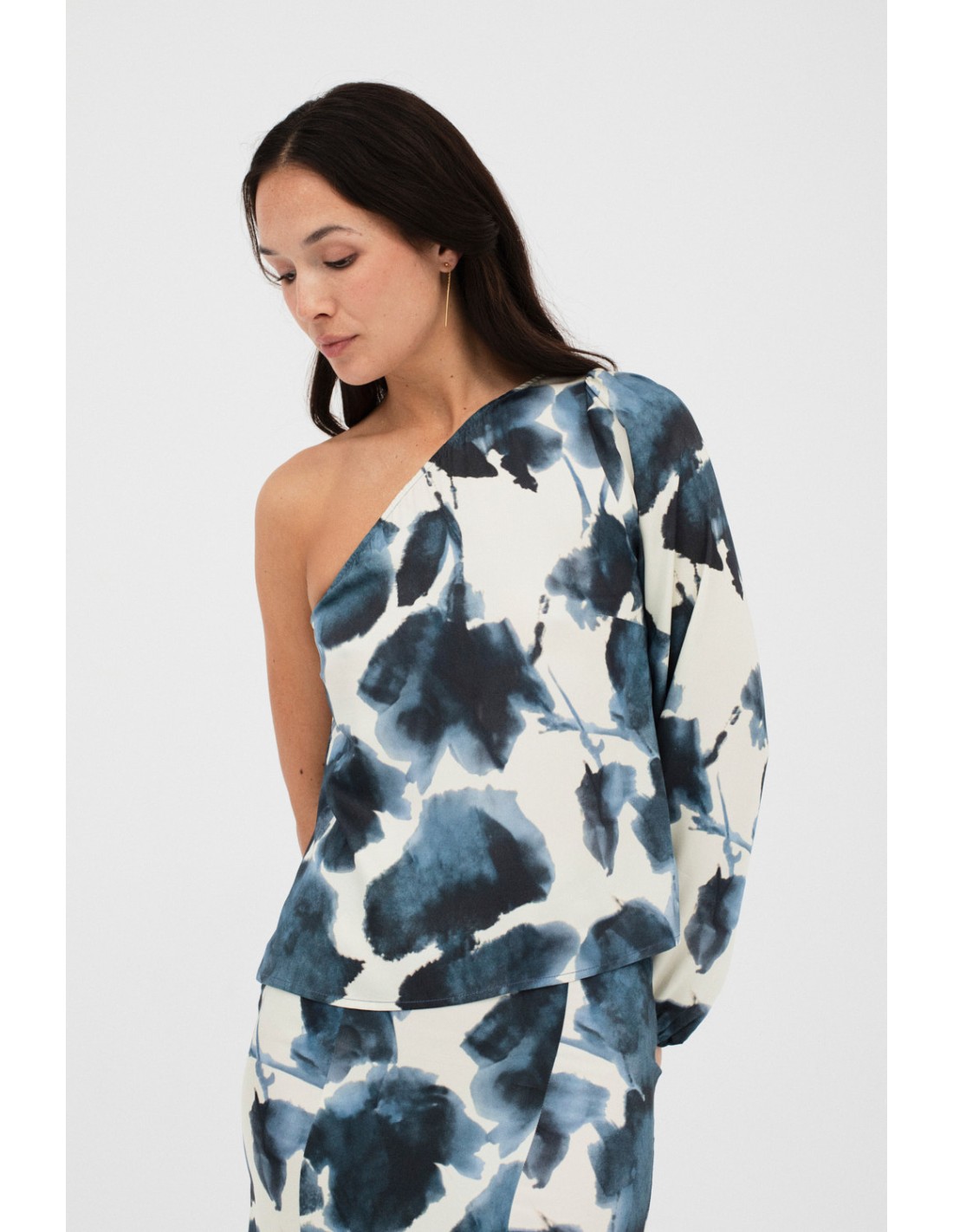 Blouse imprimée au design unique avec une seule manche volumineuse et élastique au poignet. Les ouvertures latérales ajoutent du mouvement à la pièce. Associez-la à la jupe Perier pour créer un look sophistiqué.