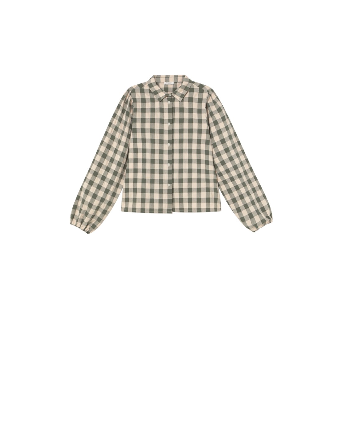 Chemise vichy avec col de chemise, boutons sur le devant et manches bouffantes avec élastique aux poignets. Associez-la à la jupe Marylebone ou au pantalon Malasaña pour un look complet.