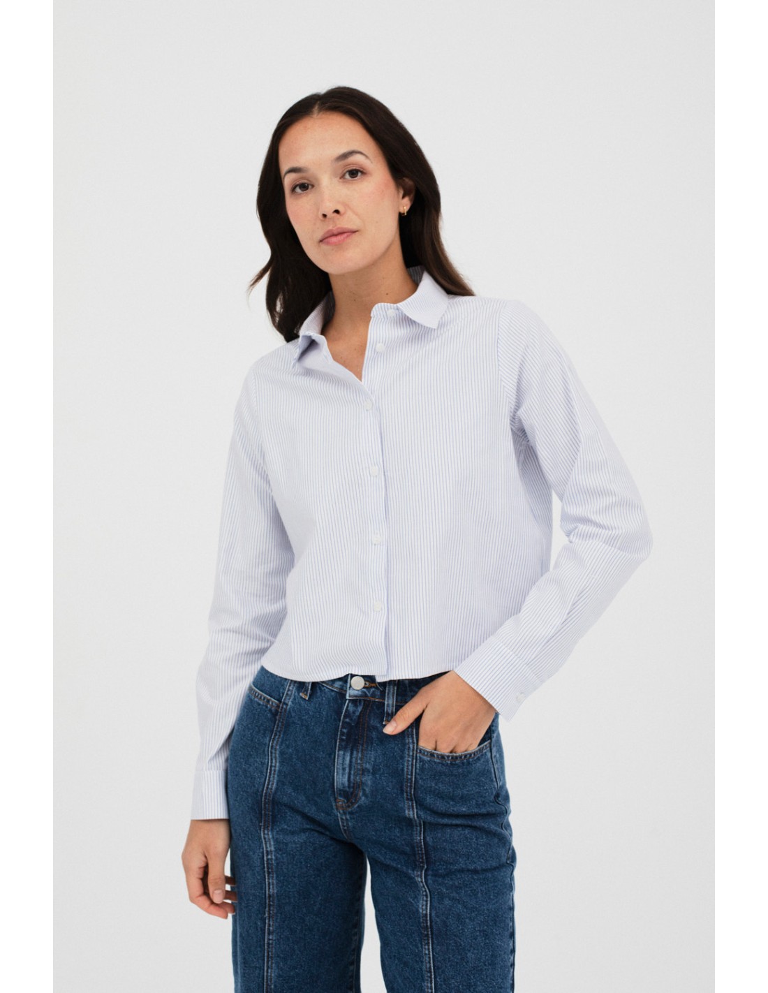 Chemise crop à manches longues, parfaite pour ajouter une touche moderne à votre tenue. Elle dispose d'un col de chemise avec boutonnage frontal et de poignets à bouton. Une pièce basique du dressing, idéale pour associer avec vos vêtements préférés.
