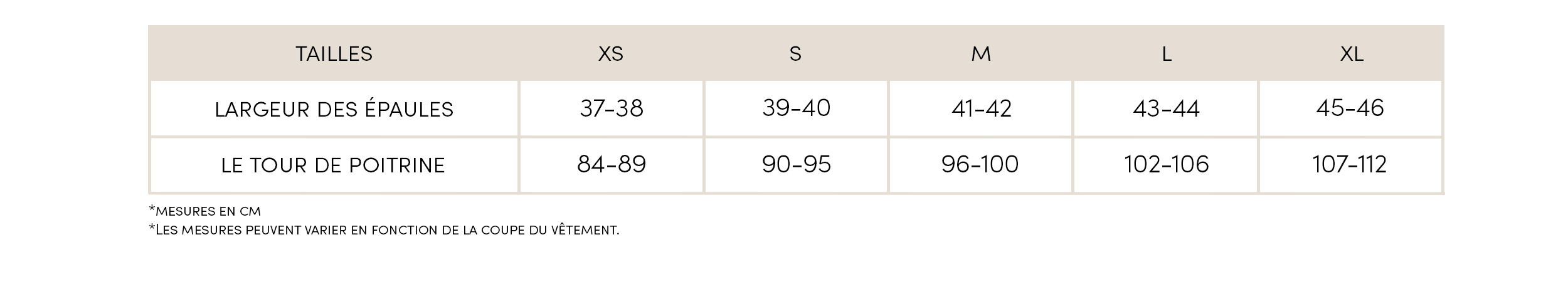 Guide des tailles