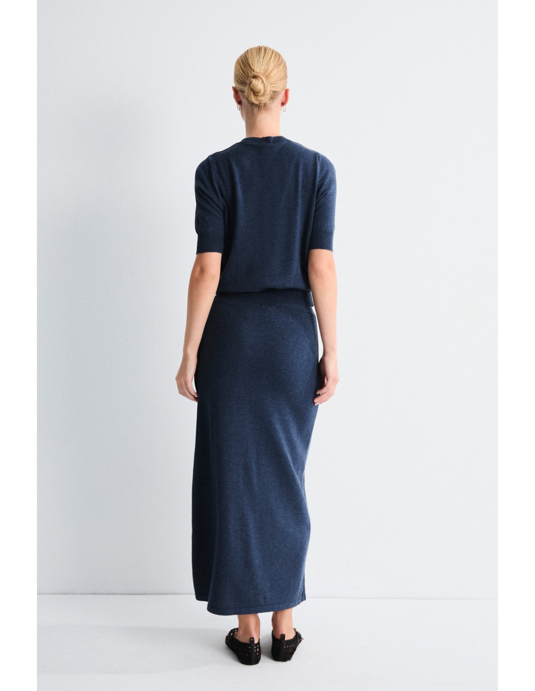 Jupe longue en maille fine avec taille élastique et coupe droite. Son tissu doux et son tombé fluide en font un vêtement confortable et élégant. Idéale à porter avec le pull Celeno assorti.