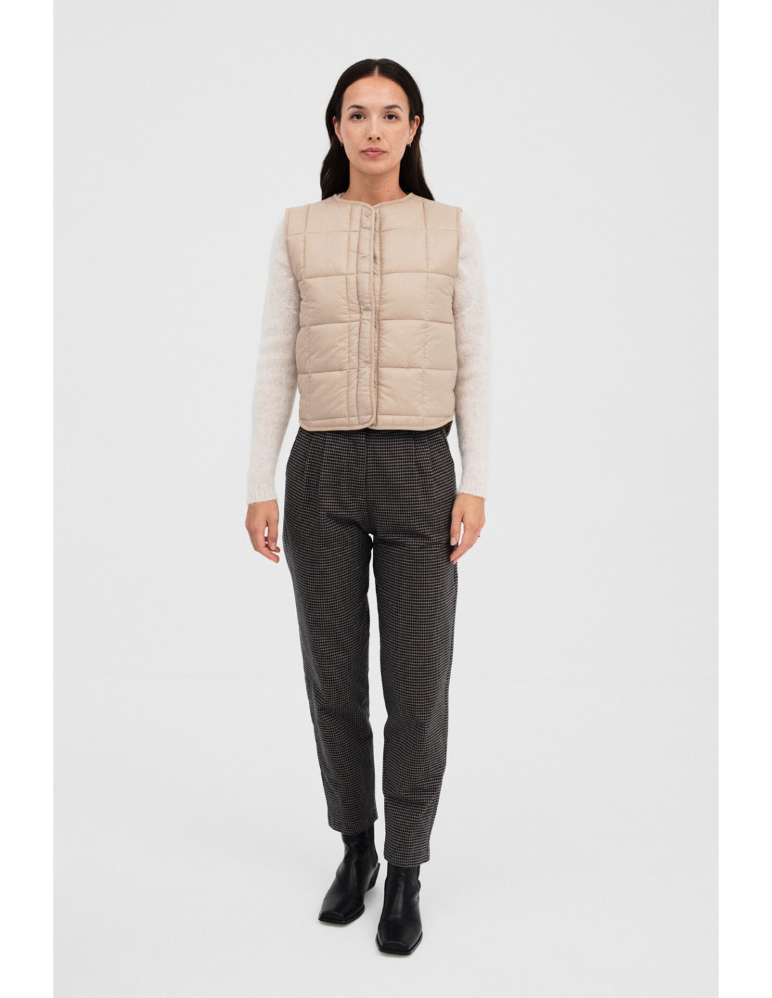Gilet matelassé au design moderne, avec des poches discrètes sur les côtés et une fermeture à boutons-pression. Léger et polyvalent, il est idéal pour rehausser n'importe quel look. À assortir avec le sac Corts.
