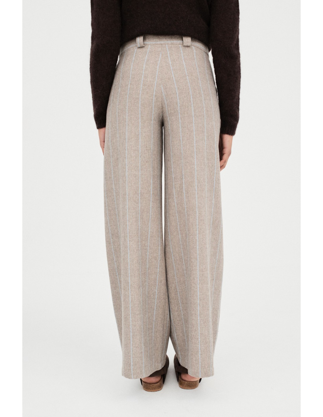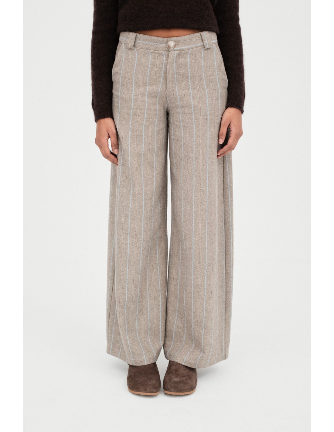 Découvrez l'élégance et le confort de notre pantalon à rayures. Avec une taille basse et une coupe large, il se ferme avec une braguette et possède une taille élastiquée plate à l'arrière. Associez-le au gilet Zoloti.