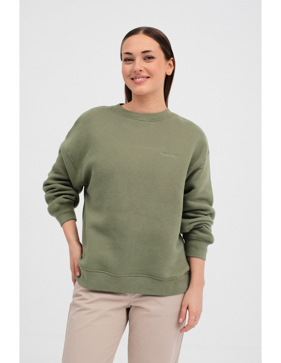 Enmore est un sweat-shirt de coupe oversize avec des manches larges et des poignets en bord-côte. Le col et les bas sont également en bord-côte, avec un subtil logo brodé de Mus&Bombon ton sur ton.