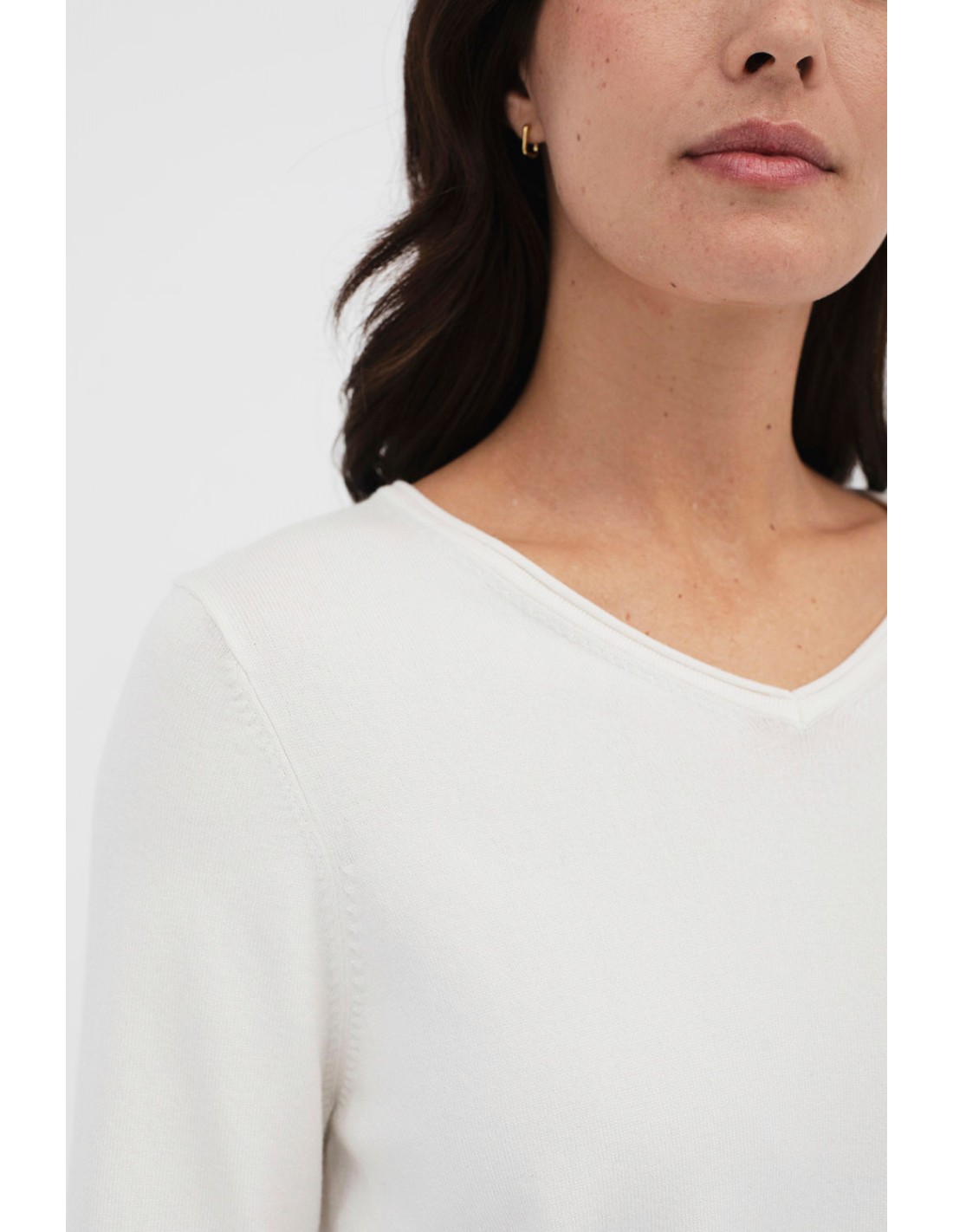 Pull basique en tricot à manches longues et col en V. Les poignets et le bas sont dotés d'un élégant bord contrasté, ce qui lui confère un style moderne et sophistiqué. Se combine parfaitement avec le pantalon Naka.