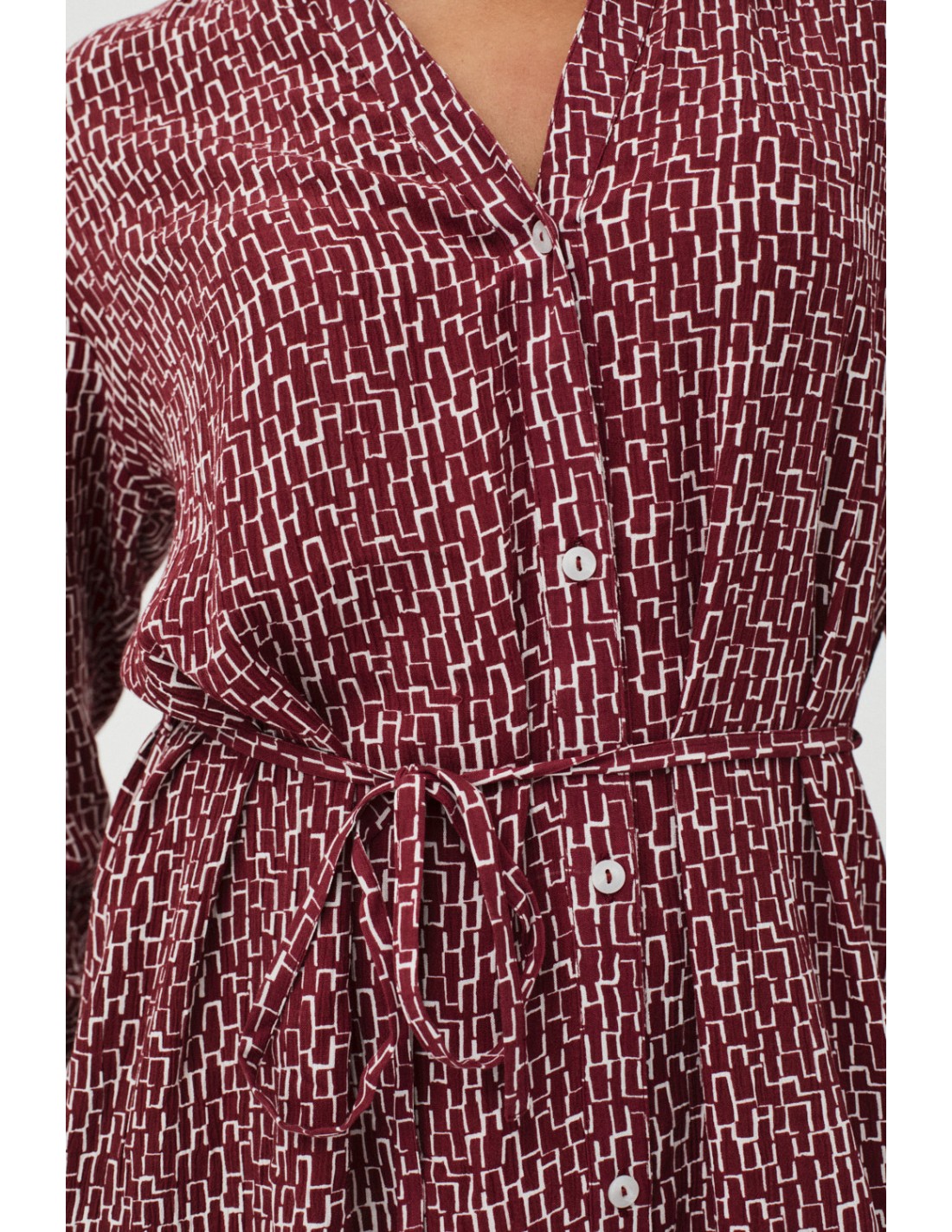 Robe chemise imprimée à manches longues, col mao et ouvertures latérales. Elle inclut une ceinture amovible, parfaite pour un look polyvalent et élancé.