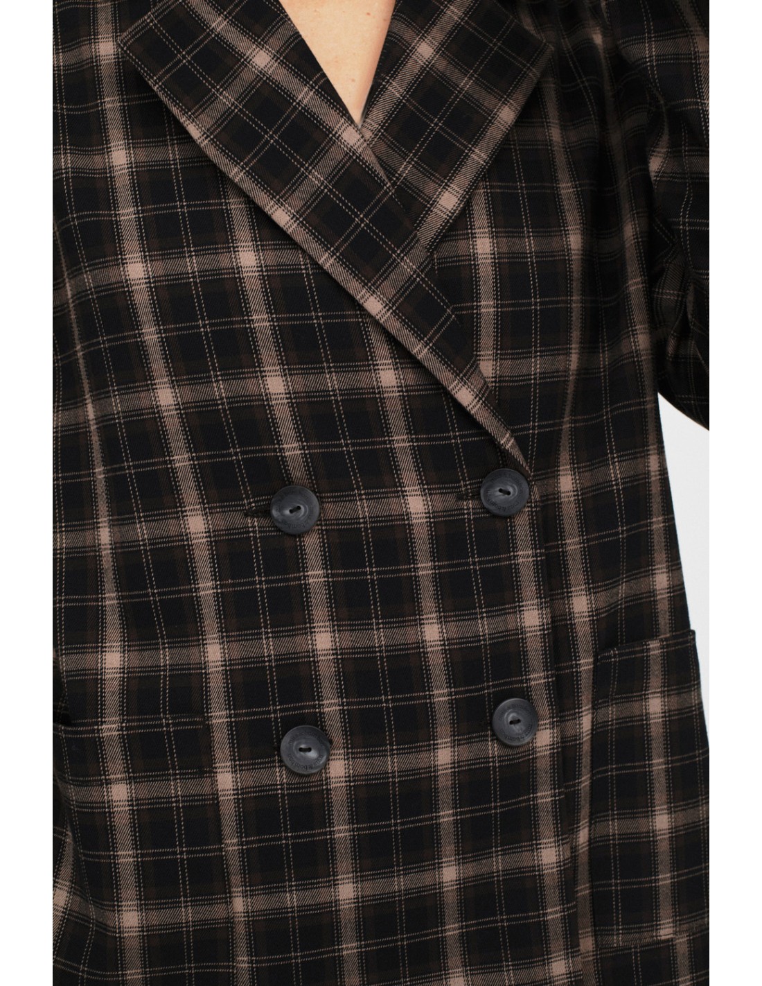 A double-breasted checked blazer with a lapel collar. Pair it with the Dalston trousers for a sophisticated look.