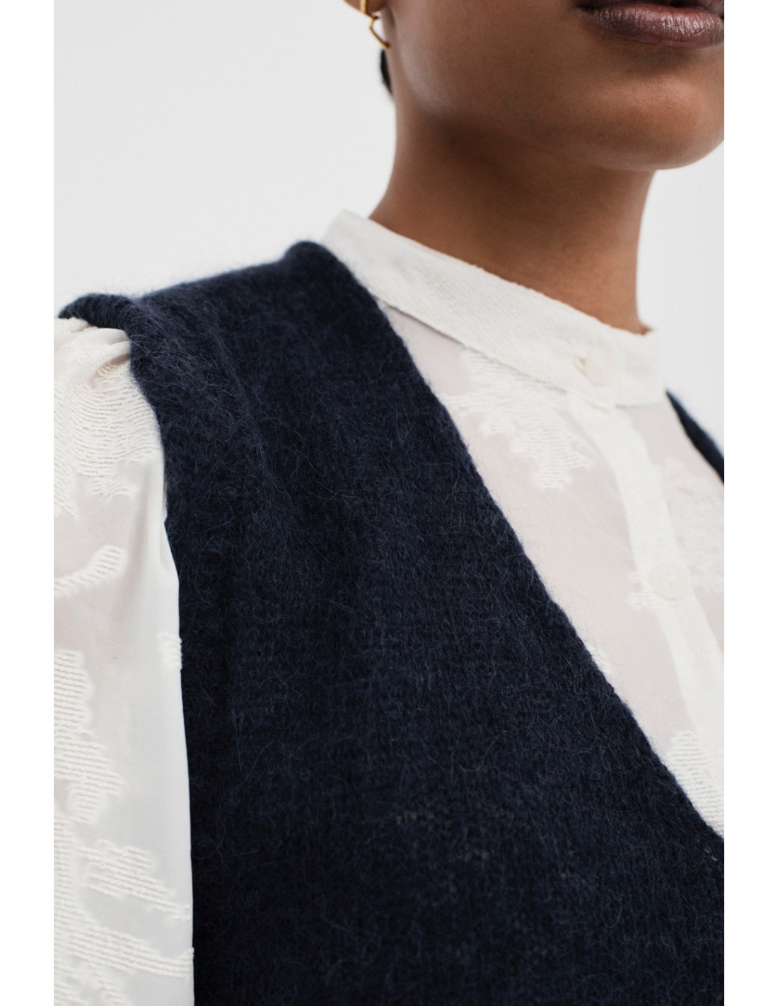 Plain knitted waistcoat with a V-neck. It is a versatile and elegant all-over knitted garment to complete any look.