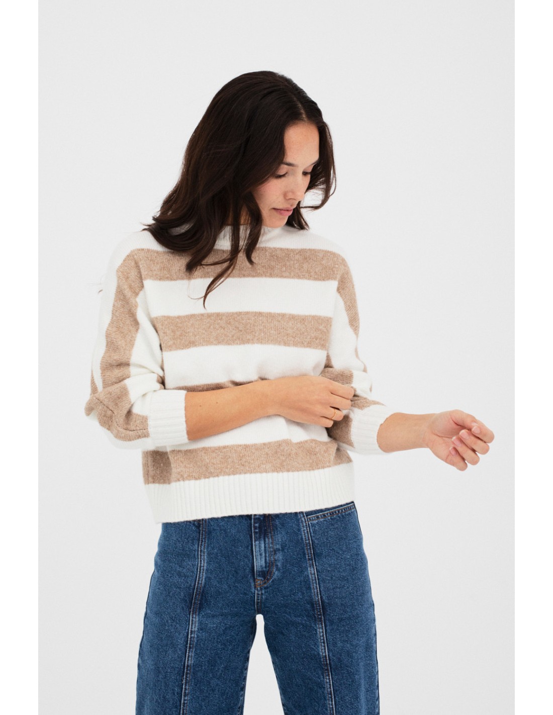 Basic striped jumper with japanese sleeves and ribbed finishes. An unique and modern twist.