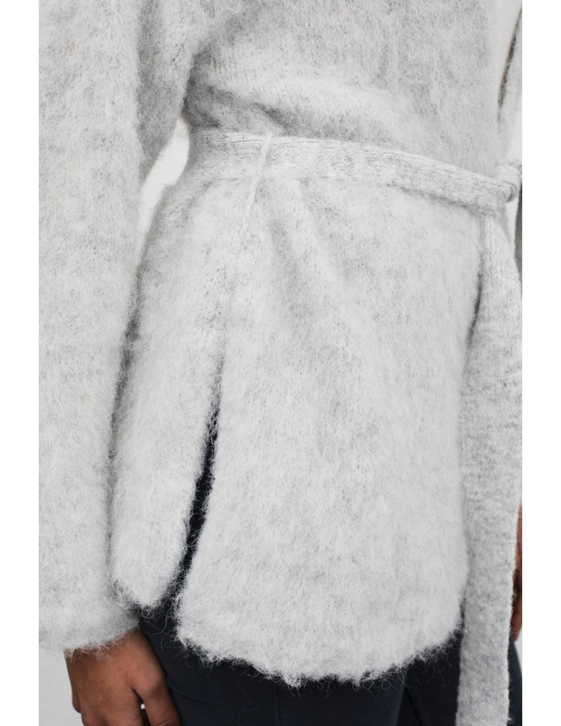 Long cardigan with V-neckline and slits in the side seams. Smooth kinitted body in plush and flat belt. It offers a sophisticated and unique design.