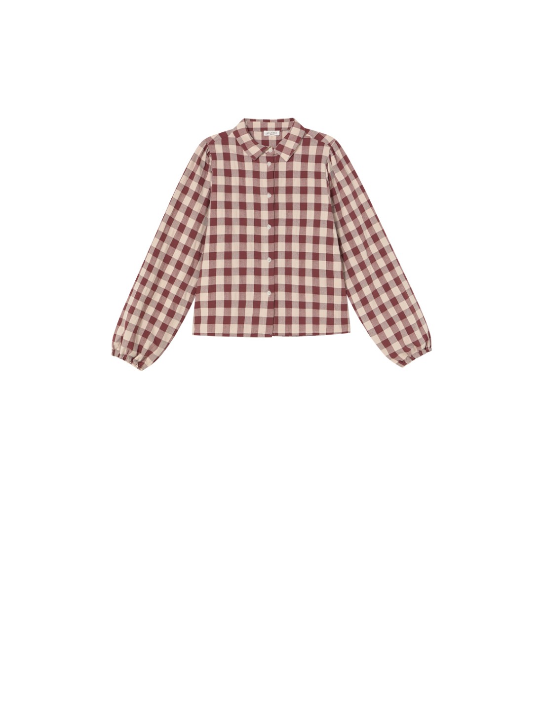 Vichy blouse with shirt collar, buttons on the front and puffed sleeves with elastic cuffs. Combine it with the Marylebone skirt or the Malasaña trousers for a complete look.