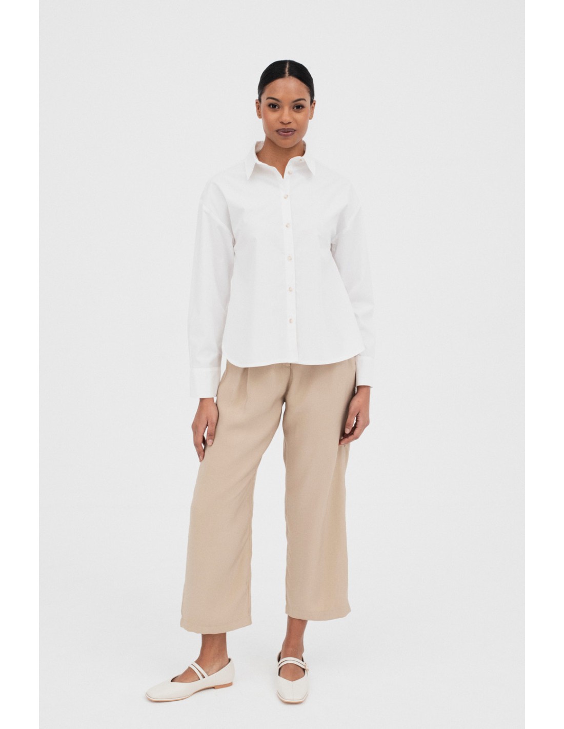 The oversize Richmond shirt with long sleeves and button cuffs. It stands out for its lacing on the back, giving it a chic touch.