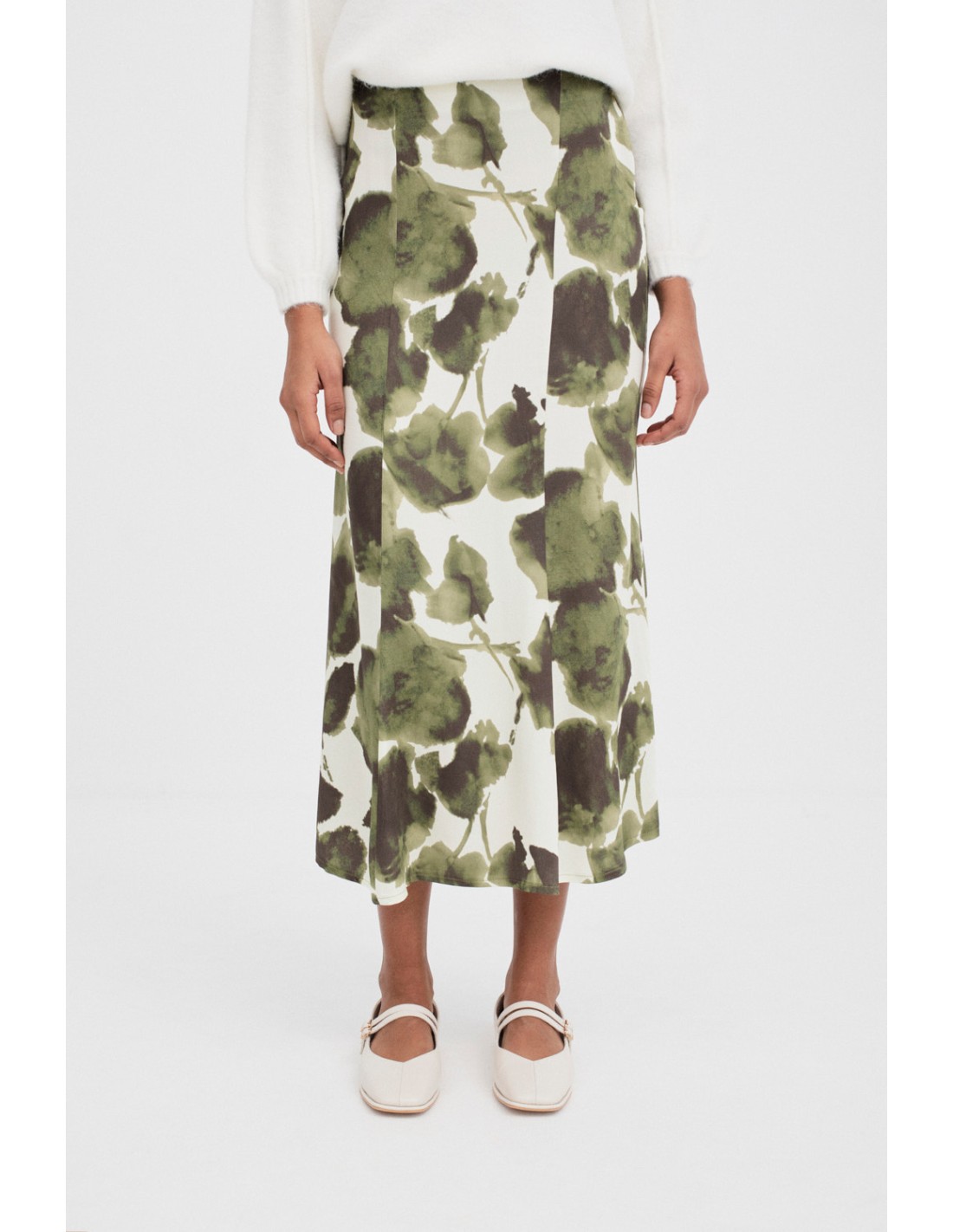 Midi skirt with a godet design that provides movement and flounce at the hem. Invisible zip fastening and flat elastic at the back. Designed to combine perfectly with the Panier blouse.