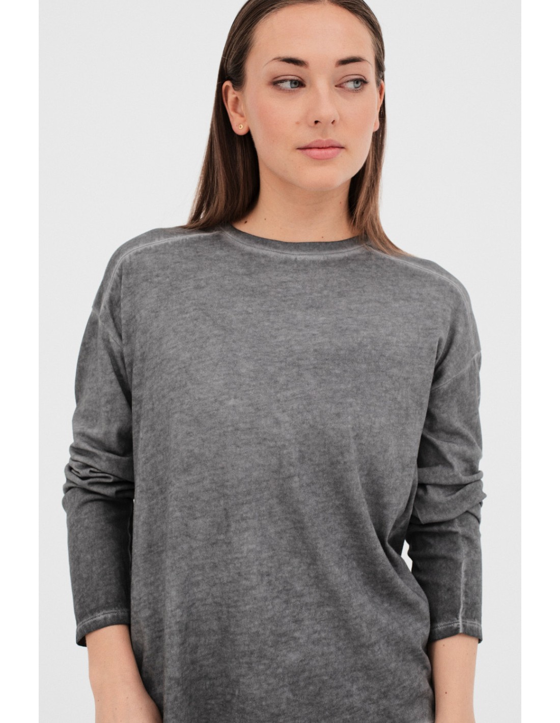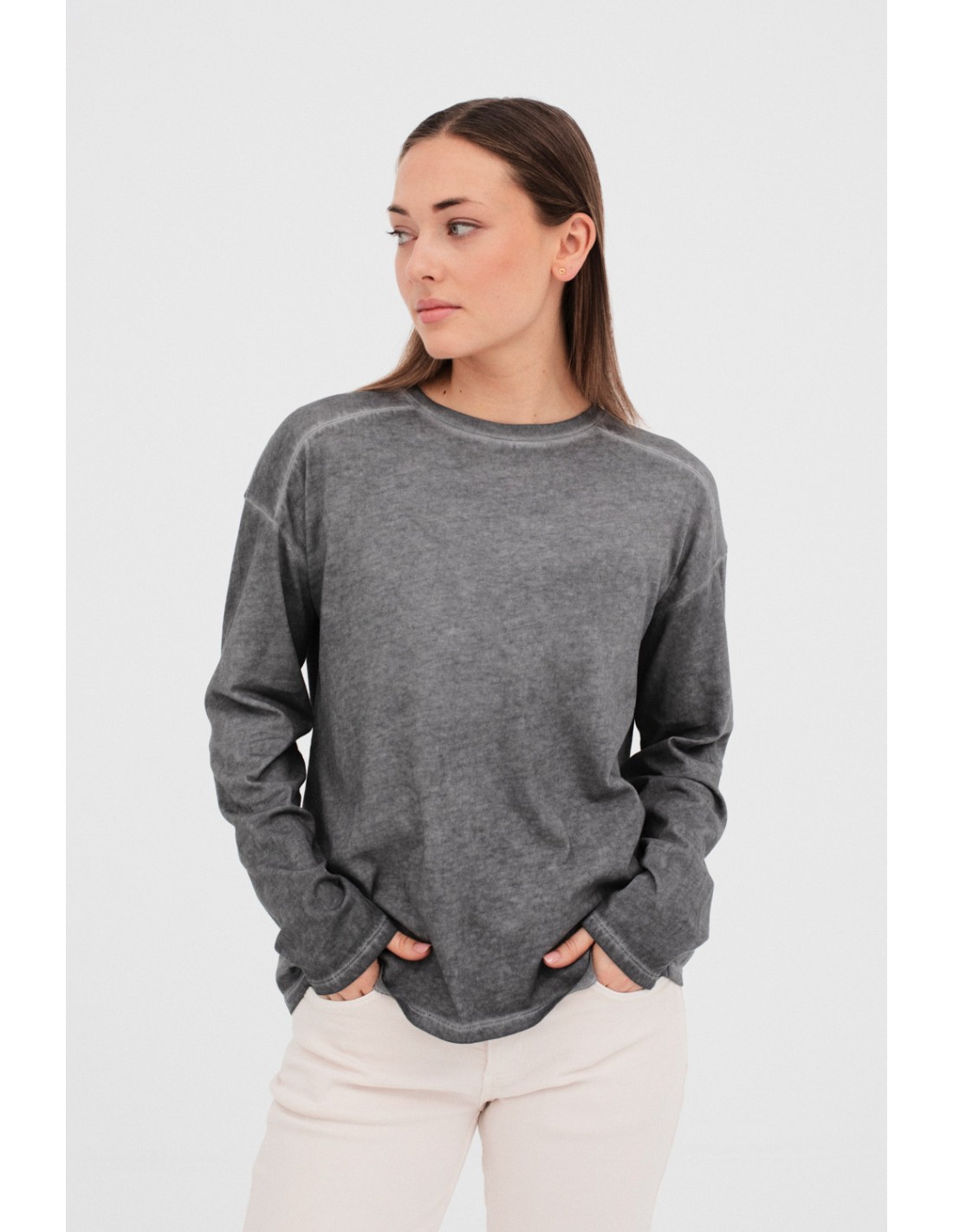 Meir is a vegetable-dyed long-sleeved shirt with a round neck. It has forward shoulders, straight sleeves and a relaxed cut, perfect for a comfortable and casual look.
