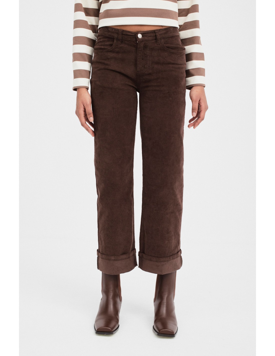 Corduroy trousers with a hem detail folded to the outside., medium rise and straight cut. Perfect to wear it with different styles and occasions.